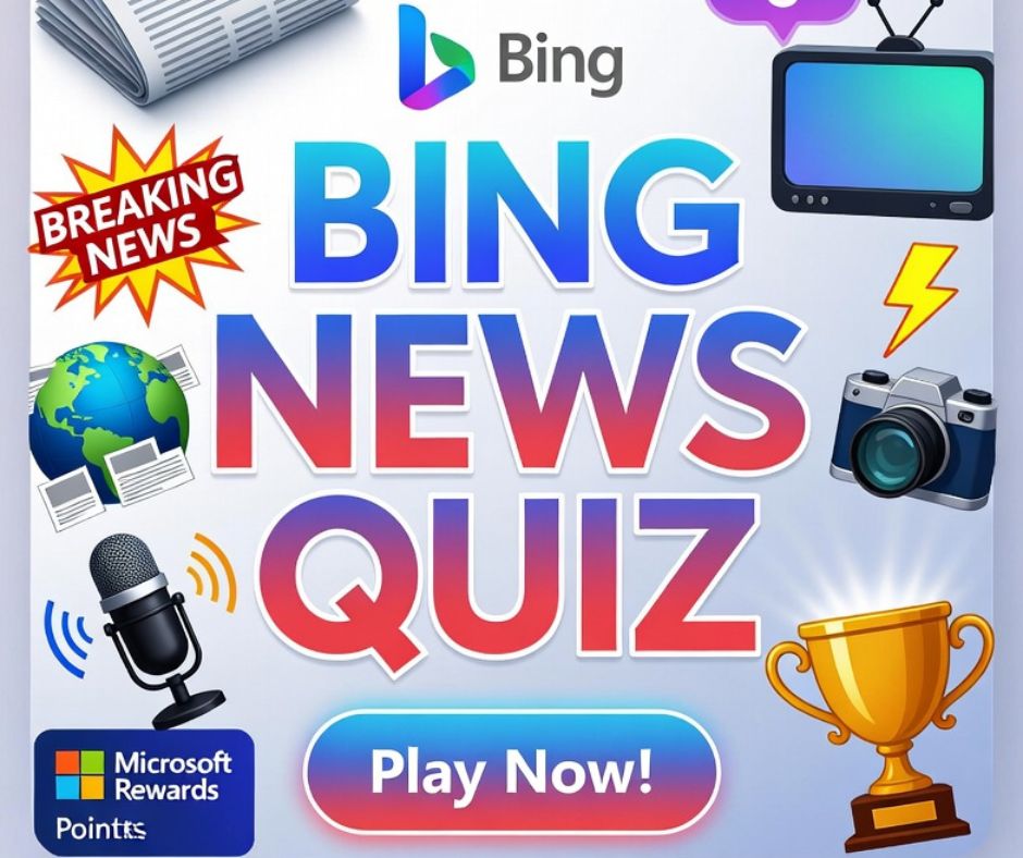 The Bing News Quiz is a multiple-choice current-events quiz embedded within the Microsoft Rewards Daily Set, drawing questions from stories that trended on Bing’s Popular Now carousel during the preceding 24 to 72 hours.